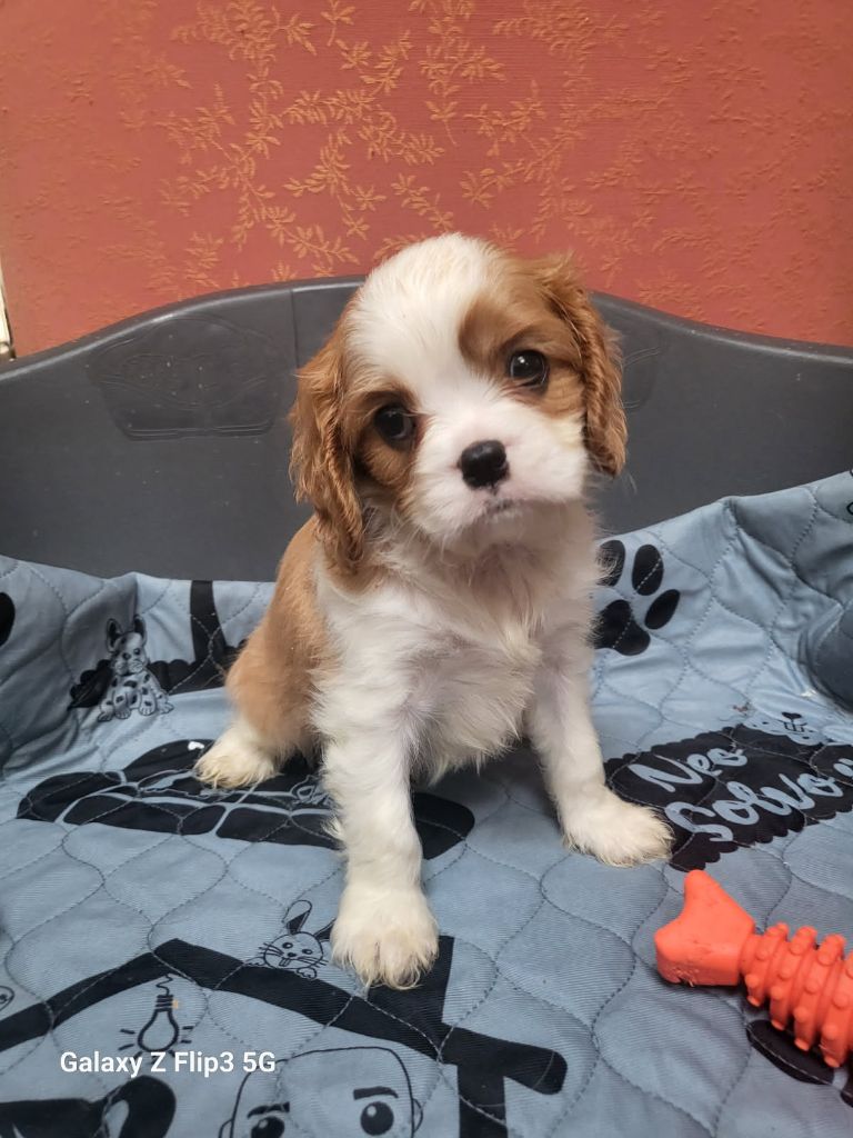 Né le 12 août 2025, ce charmant petit mâle Cavalier King Charles de couleur Blenheim est un véritable rayon de soleil. Avec son pelage soyeux blanc et marron parfaitement réparti, son regard doux et ses longues oreilles élégantes, il attire l?attention de tous. C?est un petit compagnon joyeux et affectueux, toujours prêt à donner et recevoir des câlins. Curieux et joueur, il saura remplir votre quotidien de tendresse et de bonne humeur.
